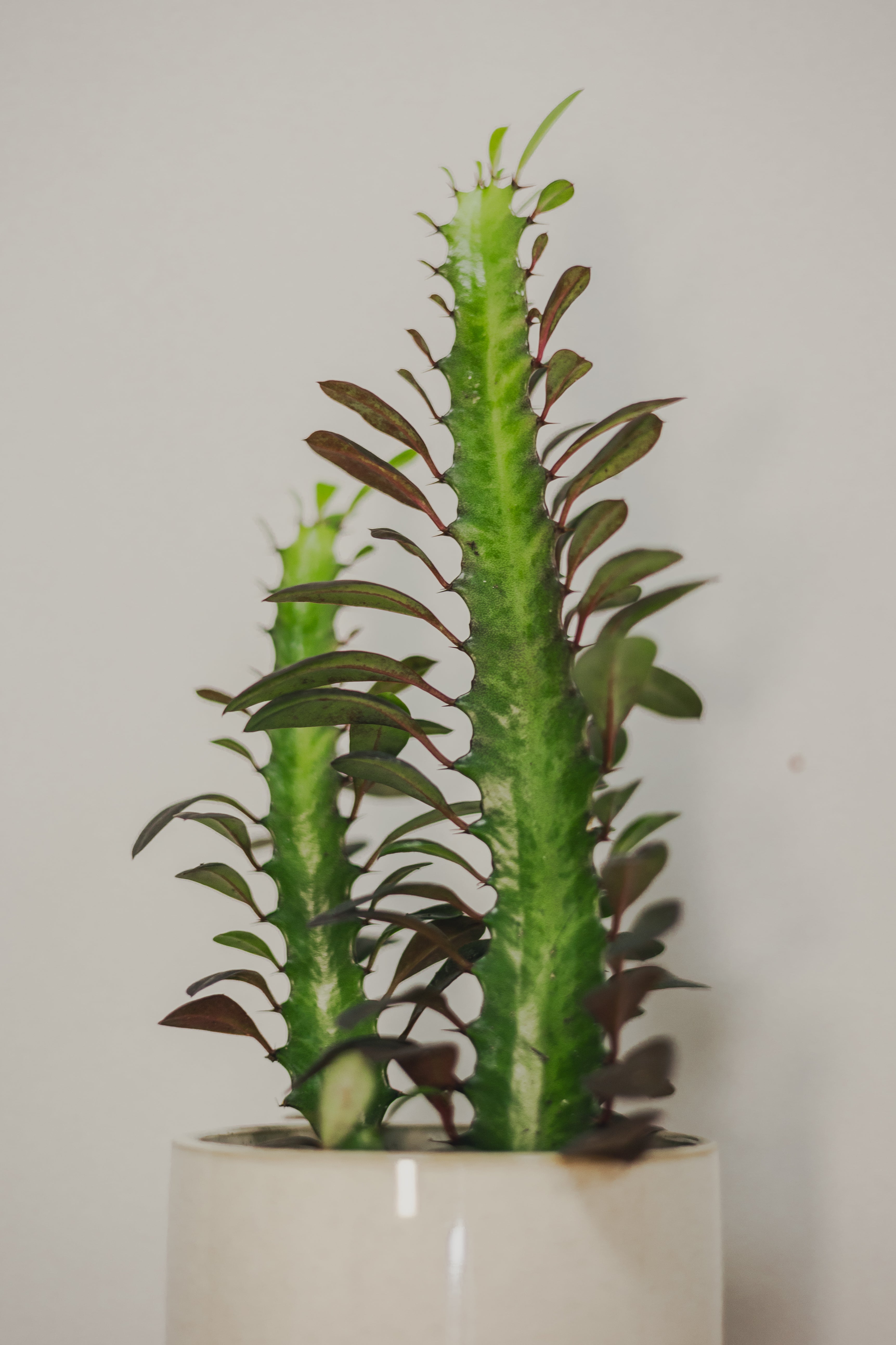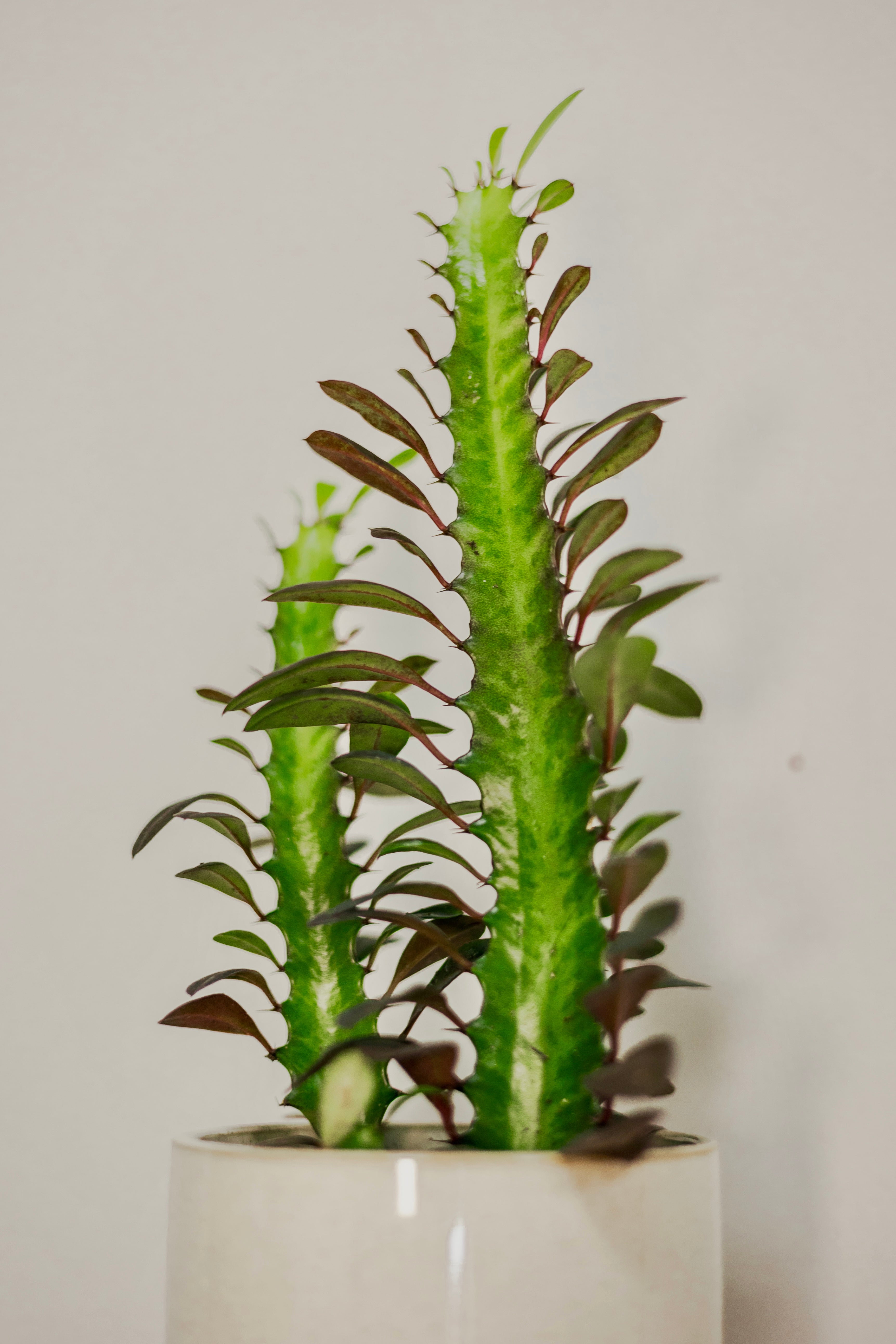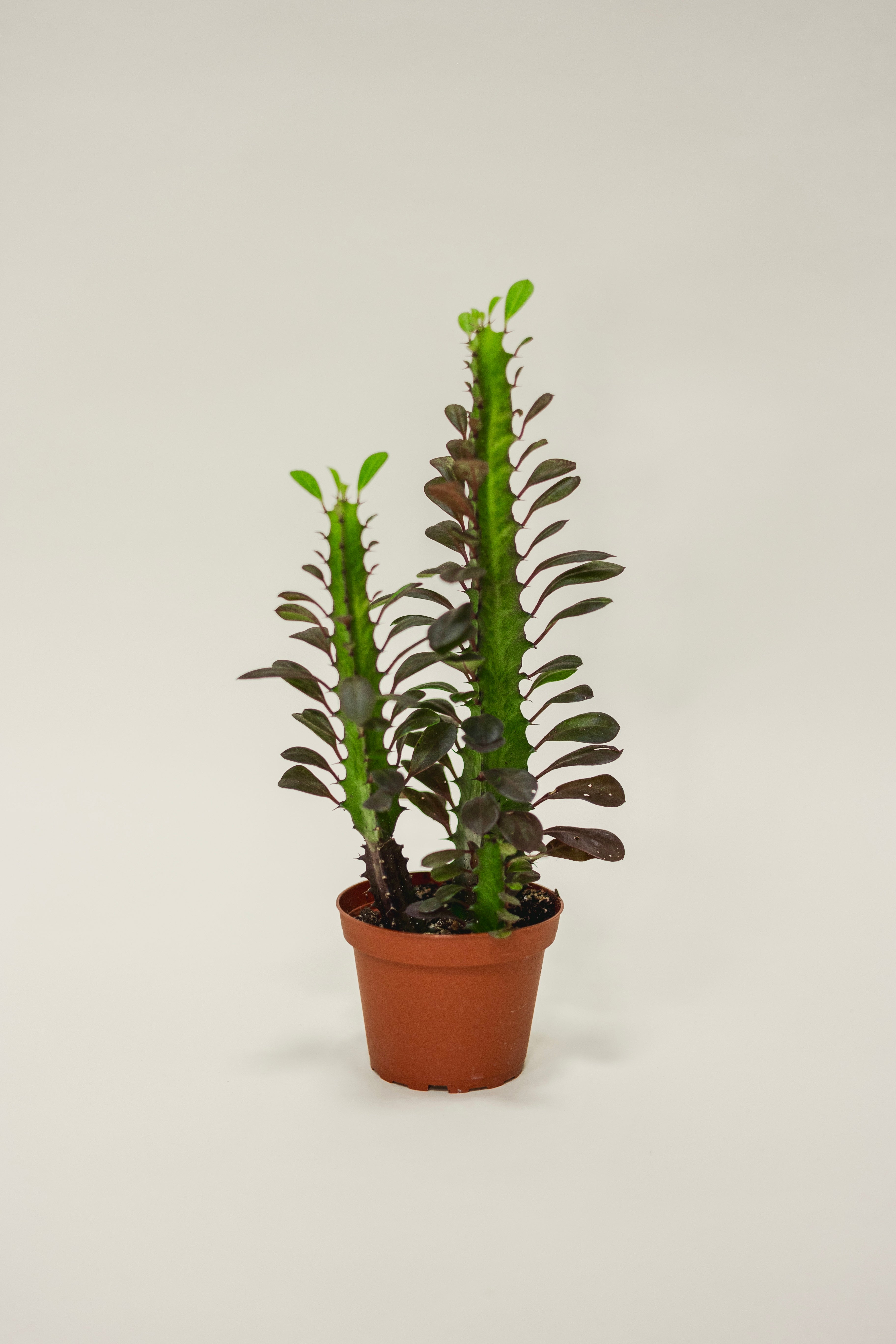This unique and striking succulent stands out in any plant collection. It features a distinctive, cactus-like form and a milky sap. Its architectural appearance and easy care requirements make it popular for those seeking a statement plant with an exotic flair. It thrives in bright light and can tolerate periods of drought, making it ideal for forgetful waterers.