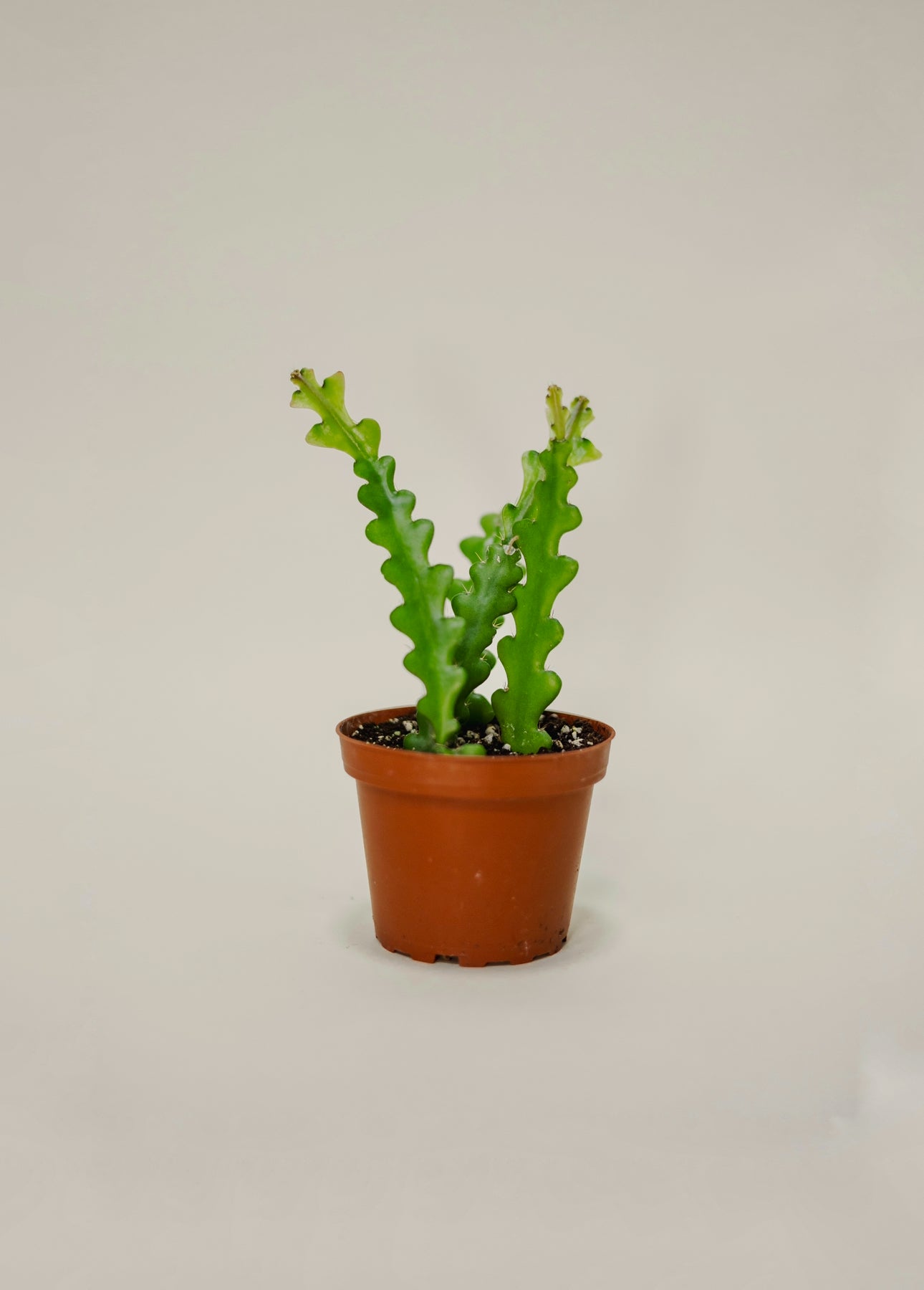 The Fishbone Cactus is a striking plant with zig-zagging stems that give it a sculptural, almost whimsical look. Its cascading growth makes it a standout in hanging planters or on high shelves. Thriving in bright, indirect light, this cactus adds bold texture and a hint of the unexpected to any plant collection.